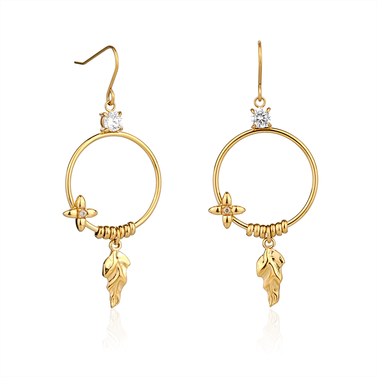 These 18k gold plated dangle hoop earrings are designed for women who appreciate elegant details, gentle sparkle, and nature-inspired aesthetics. Lightweight, versatile, and beautifully crafted, they serve as everyday staples while standing out enough for festive or special occasions.