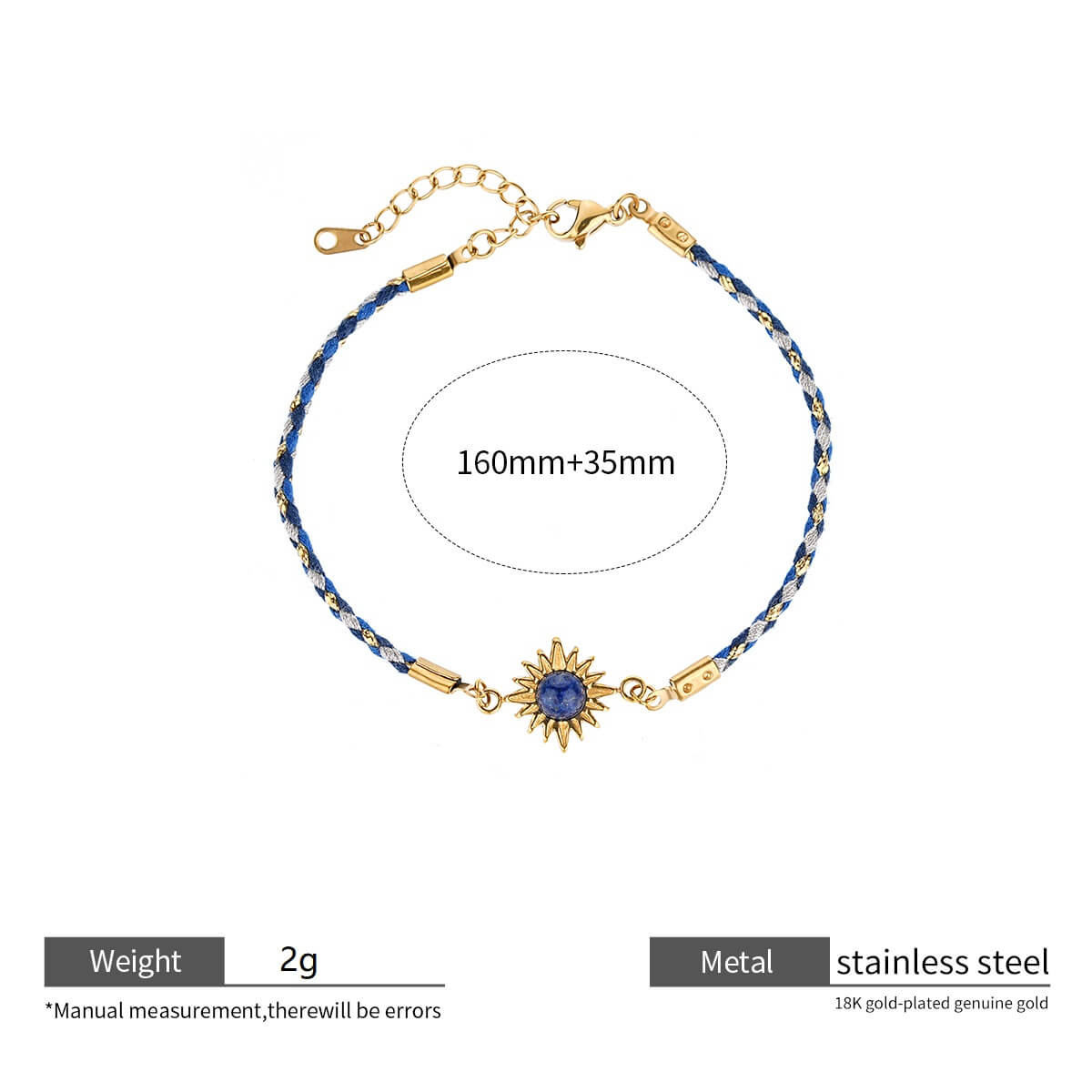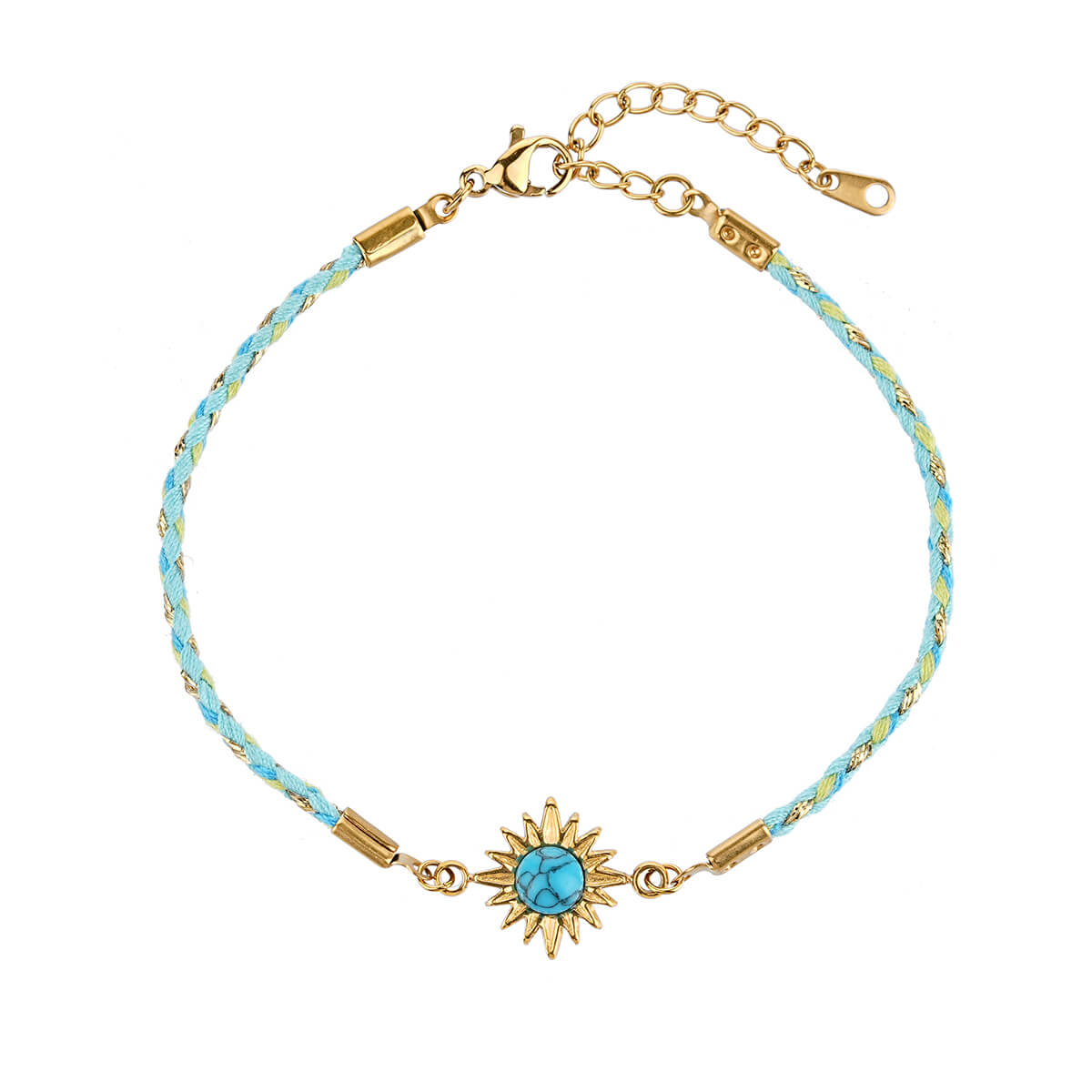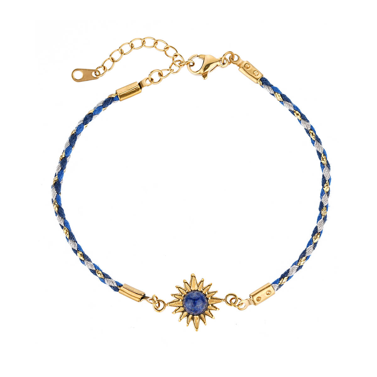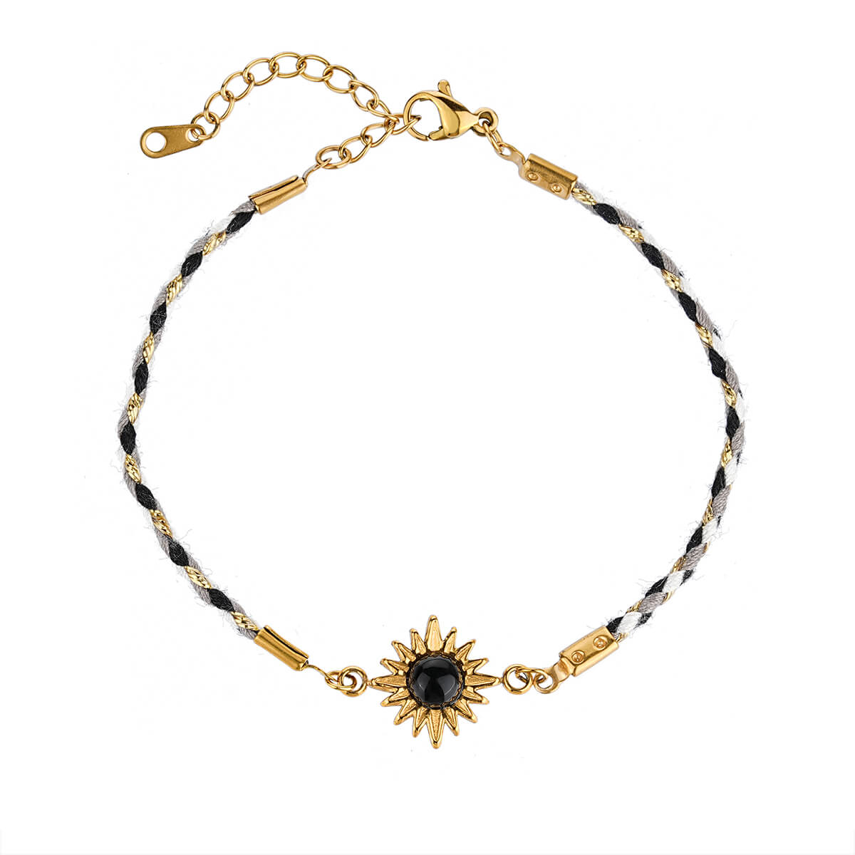 Justop Fashion Jewelry | Boho 18K Gold Braided Sun Charm Bracelet with Natural Healing Stones