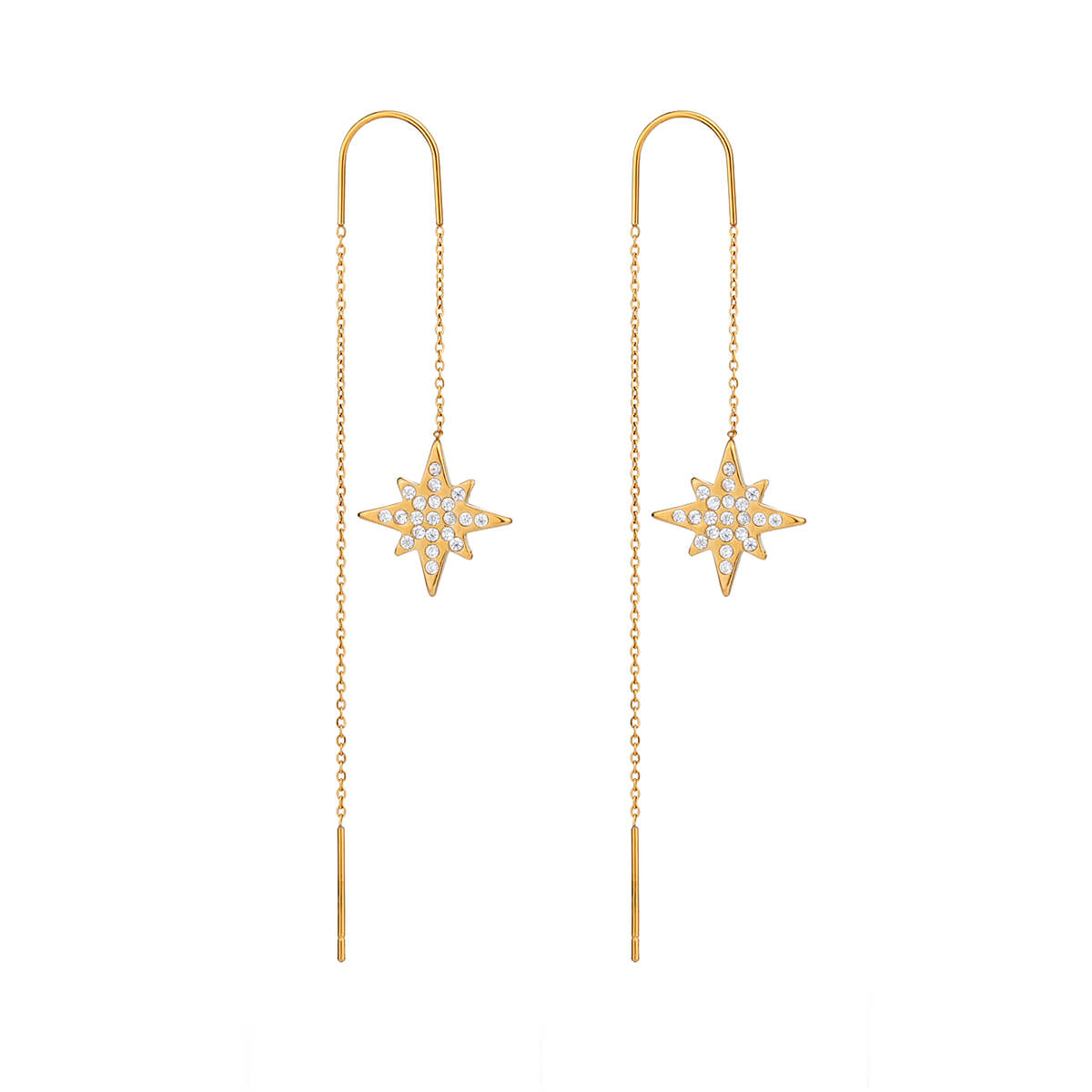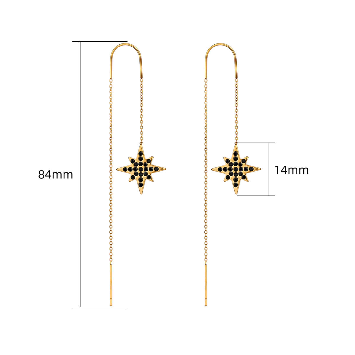 These star threader earrings showcase stunning starburst pendants paved with high-quality cubic zirconia. Each zircon is carefully set to create a radiant crystal star earrings effect.