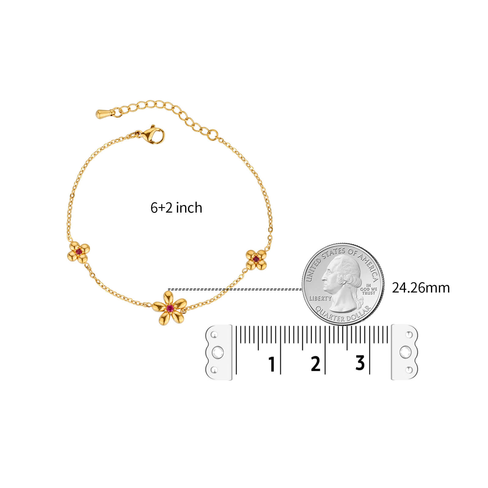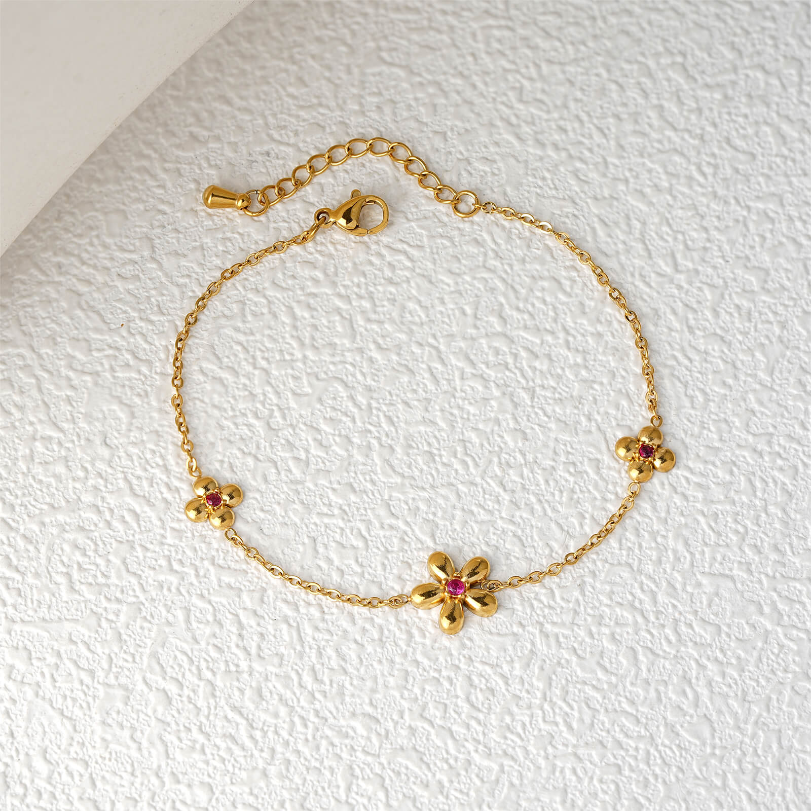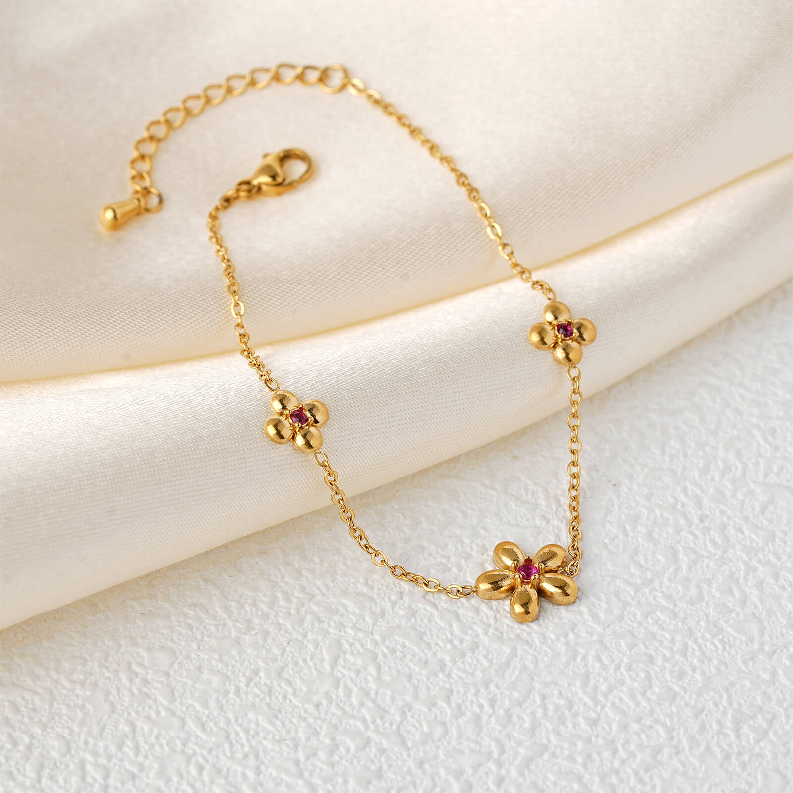 Justop Fashion Jewelry | Delicate Gold Flower Charm Bracelet with Red Zircon Accent