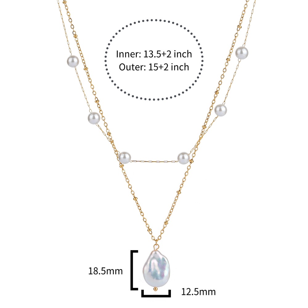 Made with a durable stainless steel pearl necklace base, this piece is finished as an 18K gold plated necklace, delivering a soft, warm gold tone with excellent color stability. The gold-plated pearl necklace resists tarnishing and fading, making it suitable for frequent wear and long-term use. Its construction also allows it to perform as a waterproof pearl necklace for daily lifestyles.