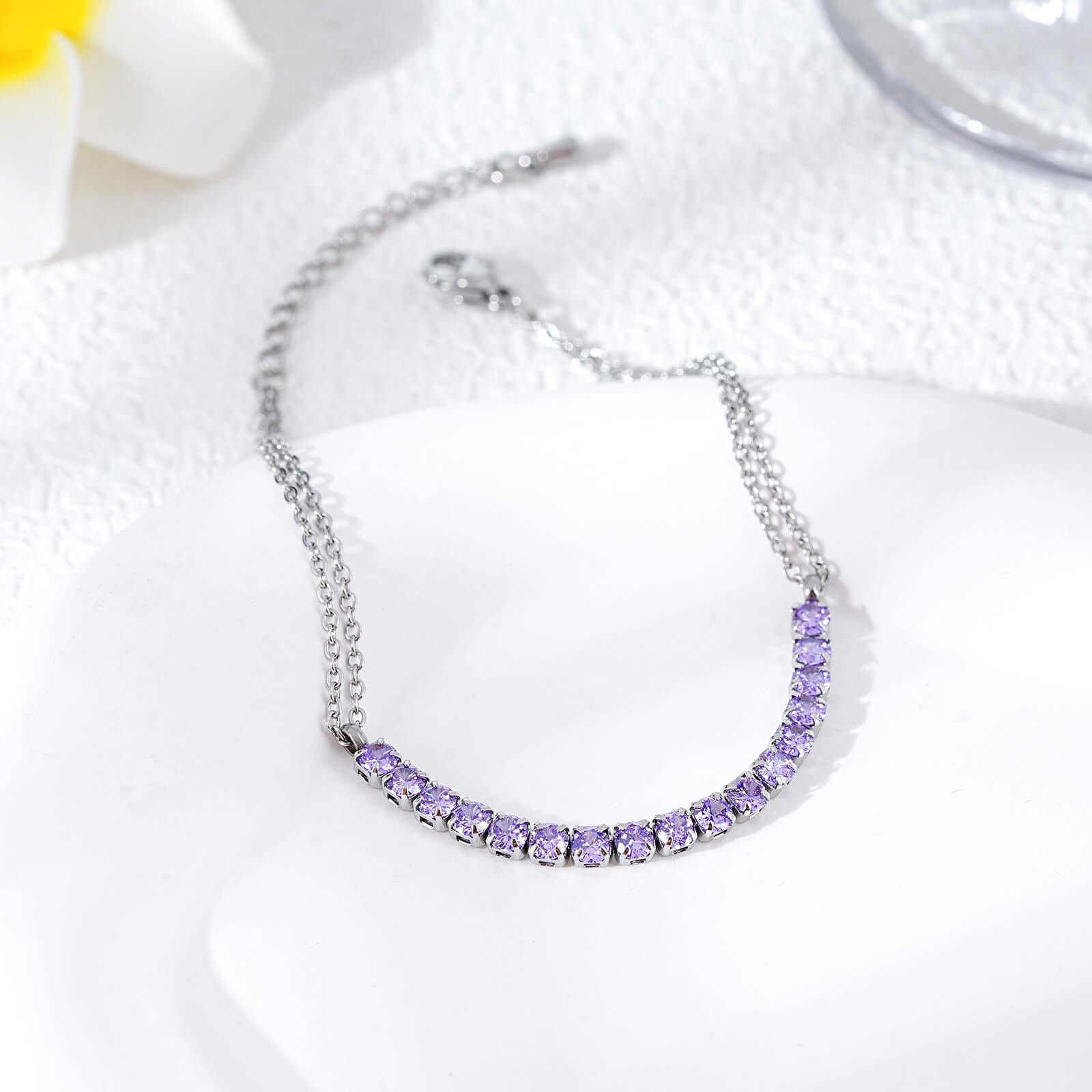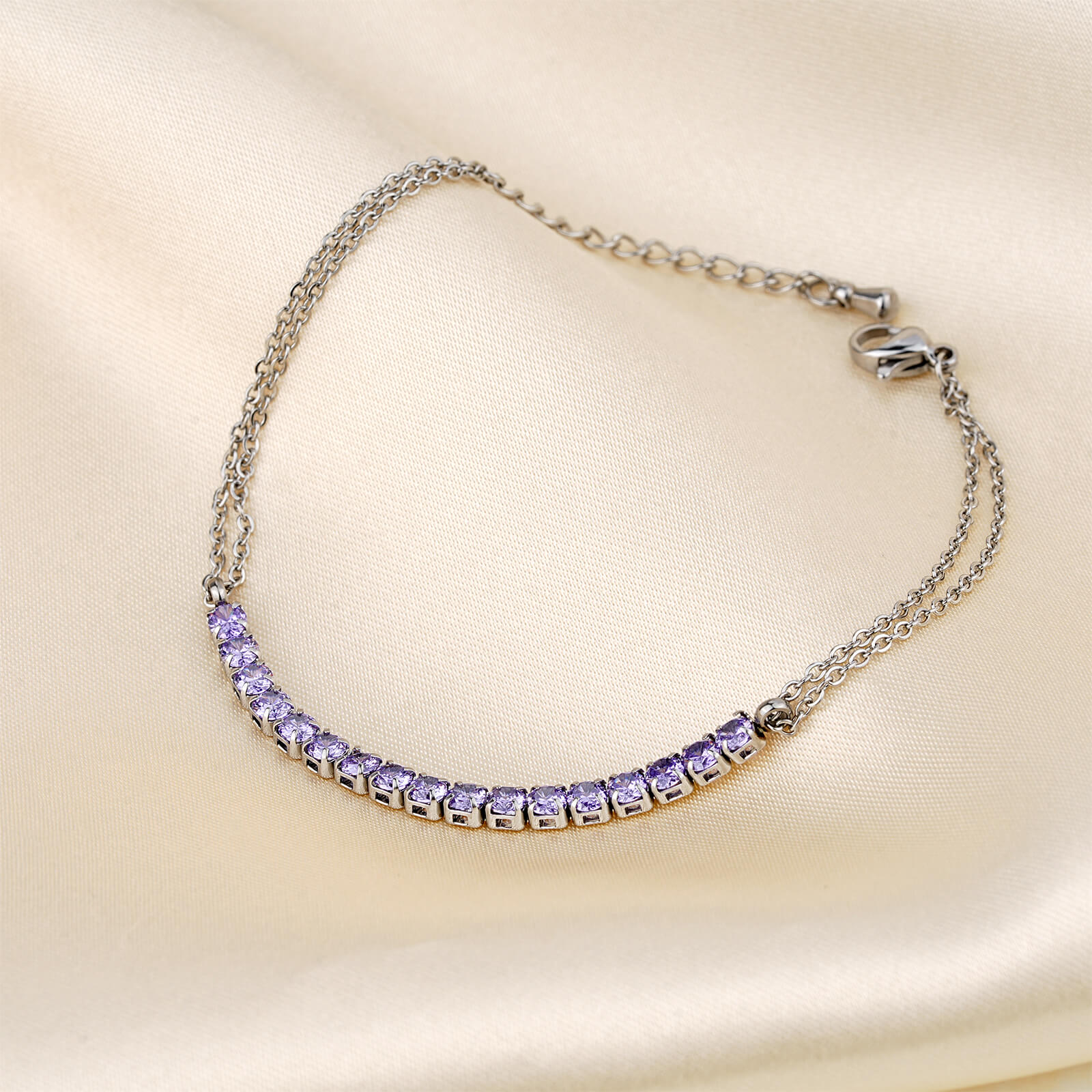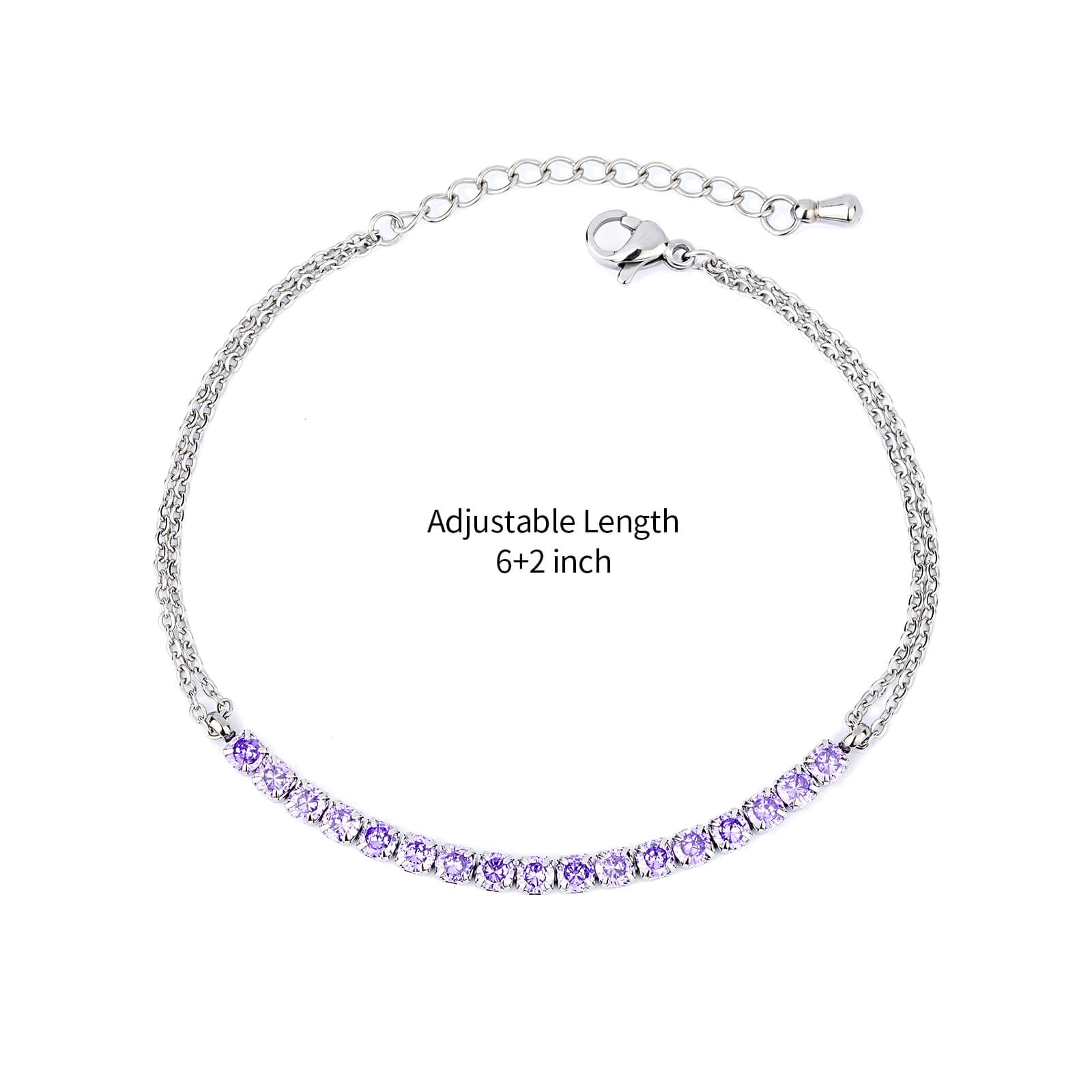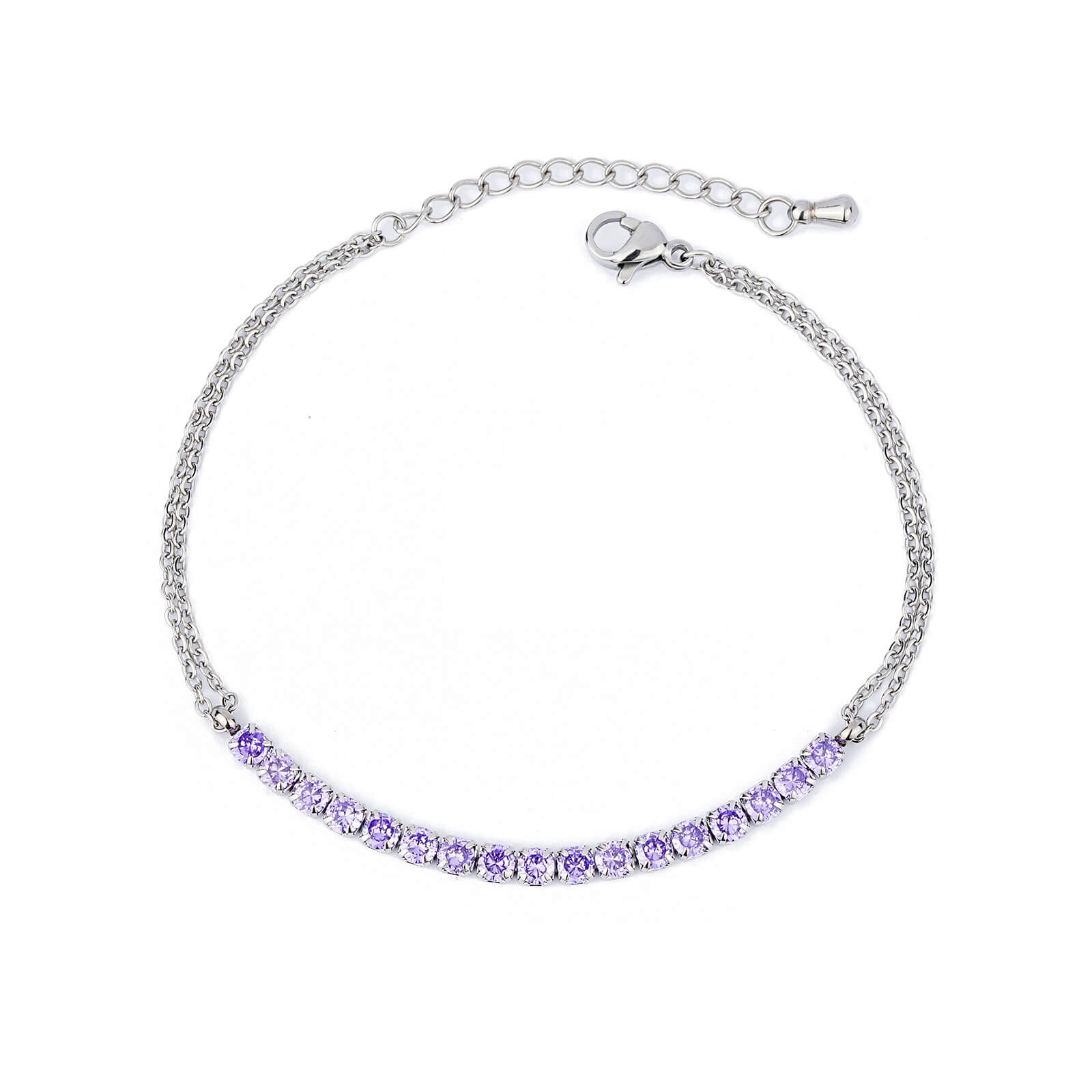 Justop Fashion Jewelry | Elegant Stainless Steel Tennis Bracelet with Purple Cubic Zirconia Charm