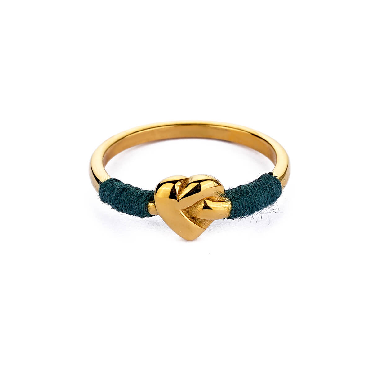 This collection of gold stainless steel jewelry blends warm metal shine with soft, hand-wrapped cotton thread to create a series of rings that feel both contemporary and artisanal.