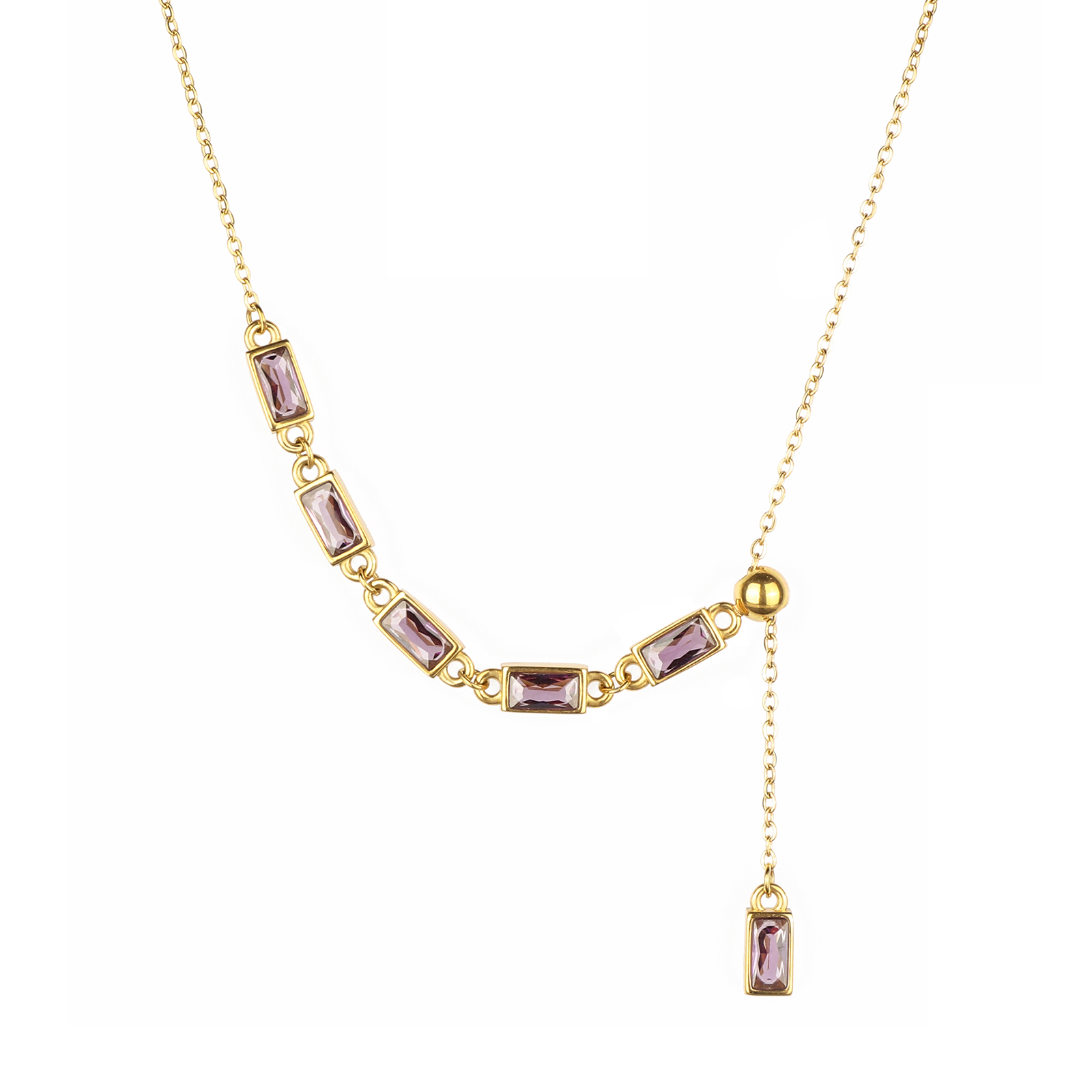 This exquisite asymmetric necklace blends the sophistication of fashion jewelry with the durability of stainless steel craftsmanship.