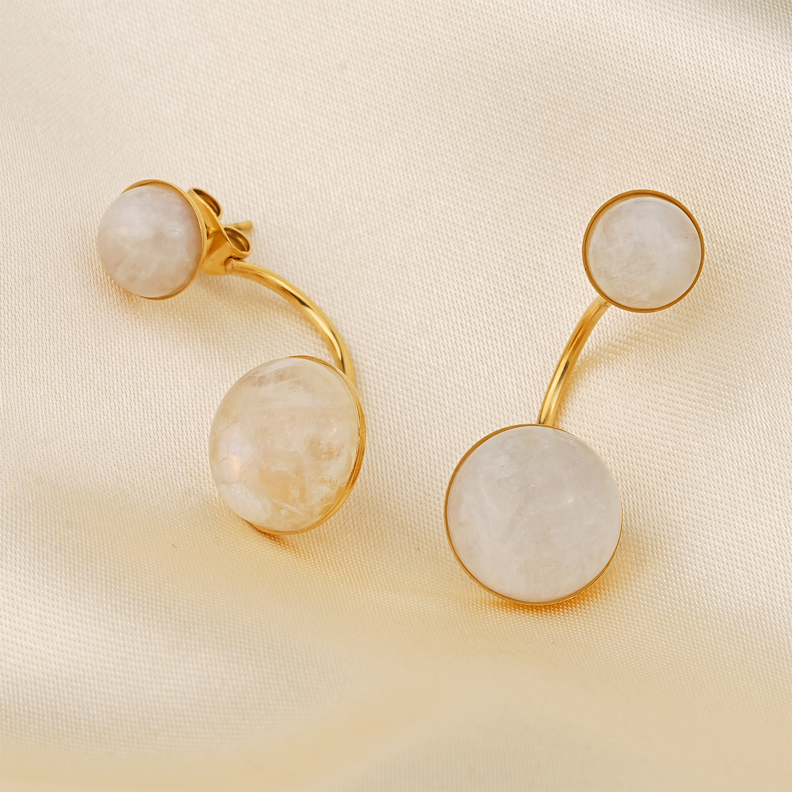 Elevate your everyday elegance with these moonstone 18K gold plated earrings, a stunning fusion of modern minimalism and vintage charm.