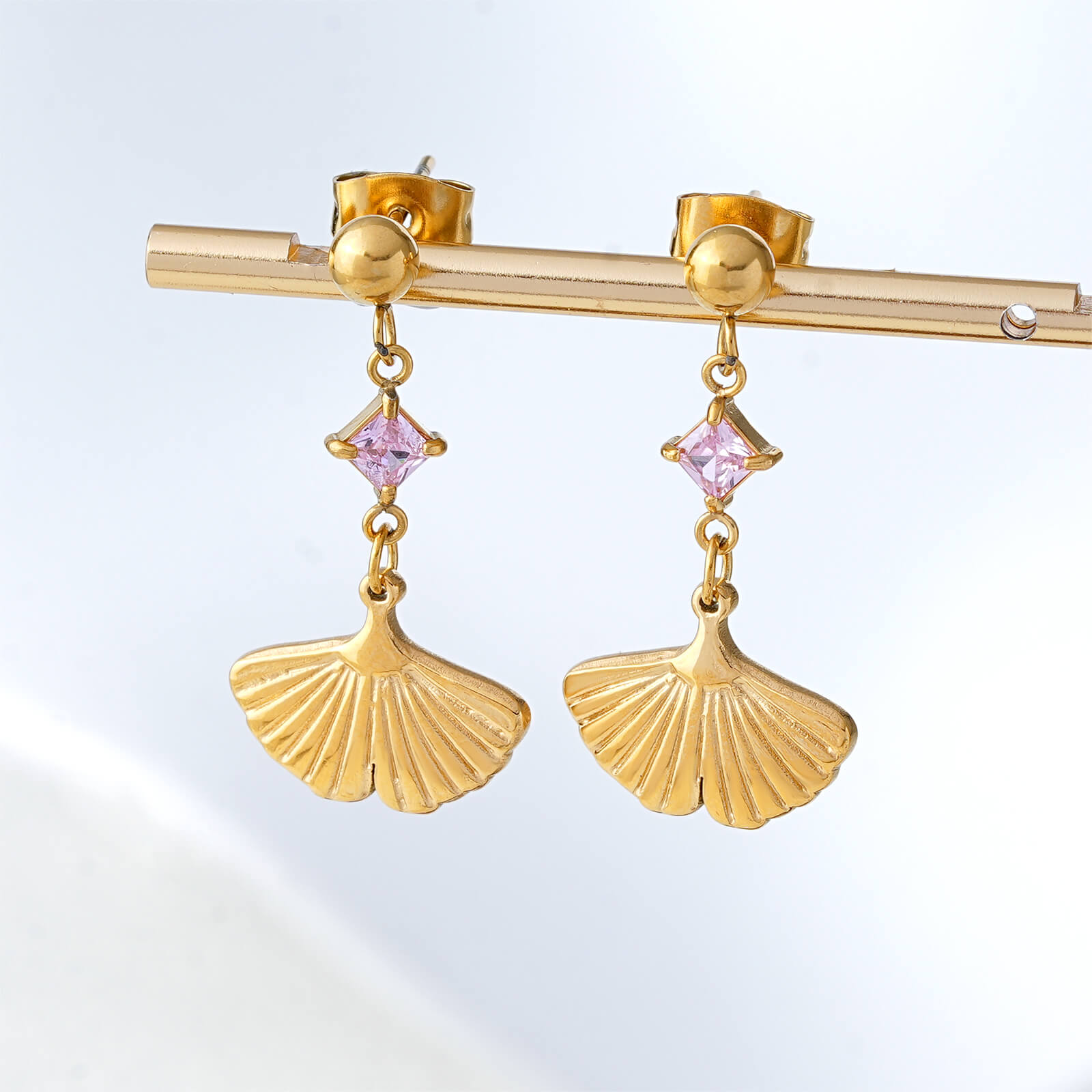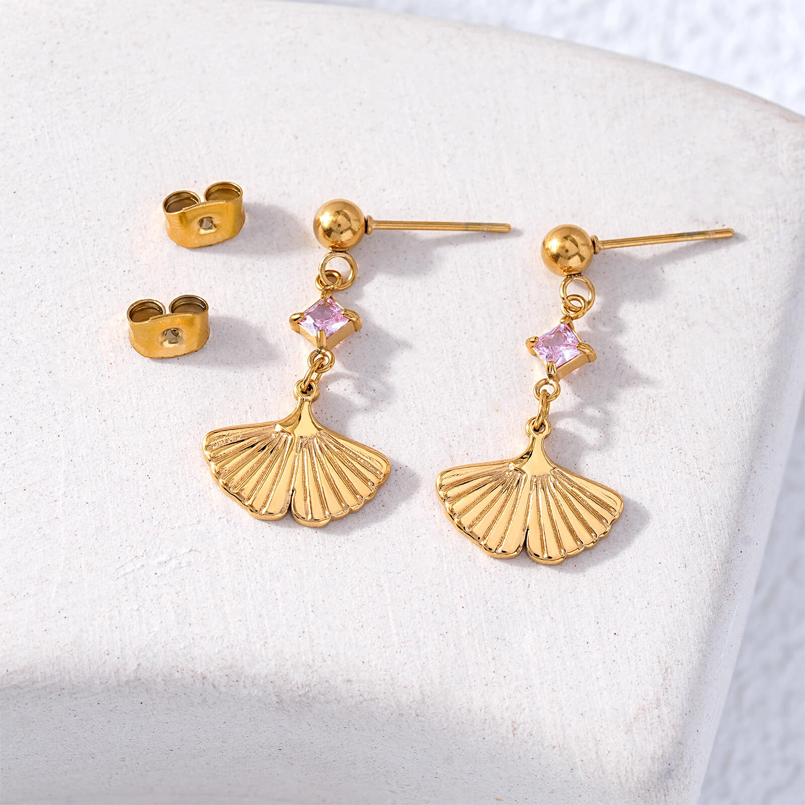 Inspired by the graceful beauty of nature, these ginkgo leaf earrings combine botanical elegance with modern jewelry craftsmanship. The design draws from the iconic shape of the ginkgo leaf—an ancient symbol of resilience, vitality, and timeless beauty—while the soft sparkle of pink zircon adds a romantic and feminine touch. Blending delicate details with refined metal textures, these nature inspired earrings offer a sophisticated yet versatile accessory suitable for both everyday wear and fashionable styling.