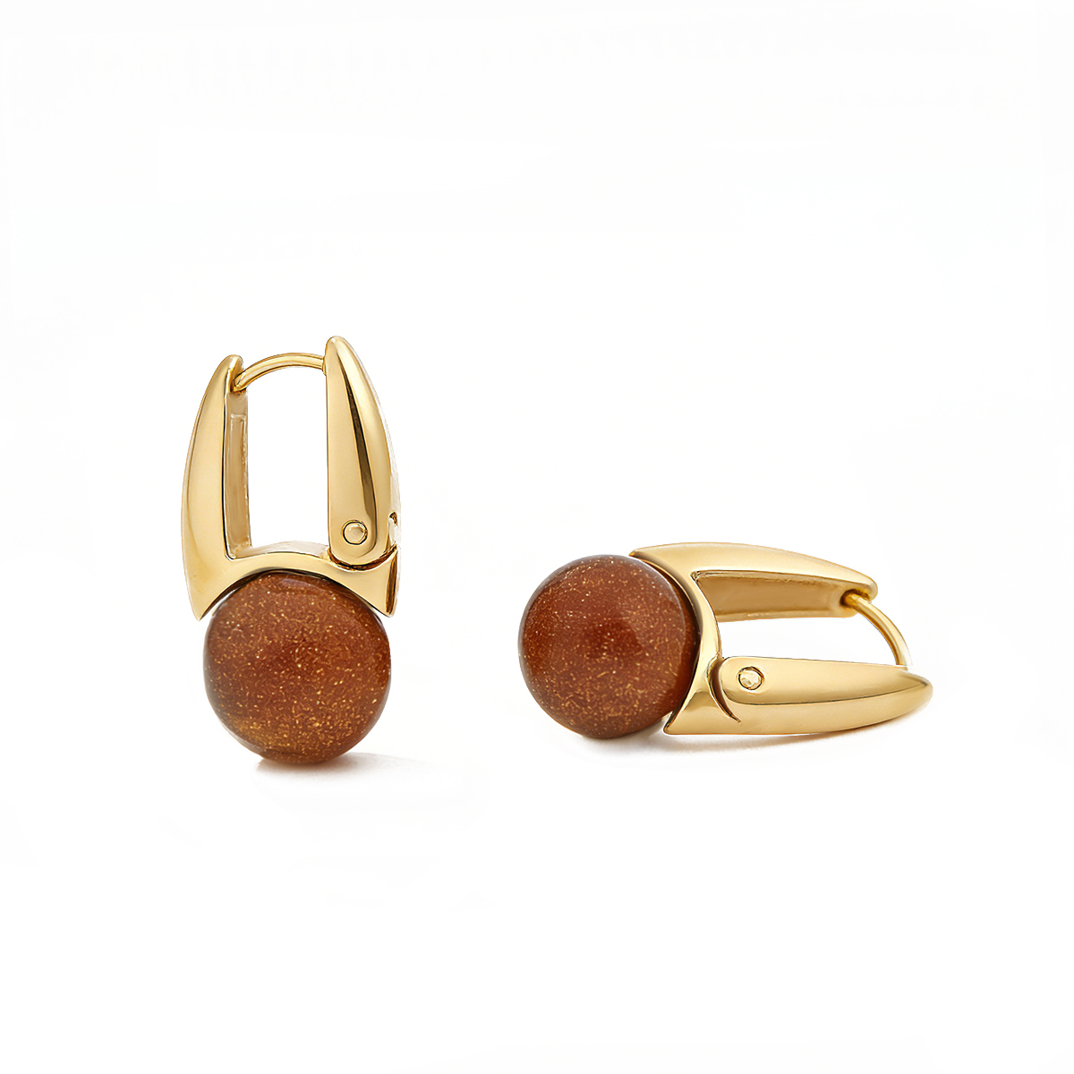 Justop Fashion Jewelry | Sculptural U Shape Hoop Earrings Adorned with Stone Bead