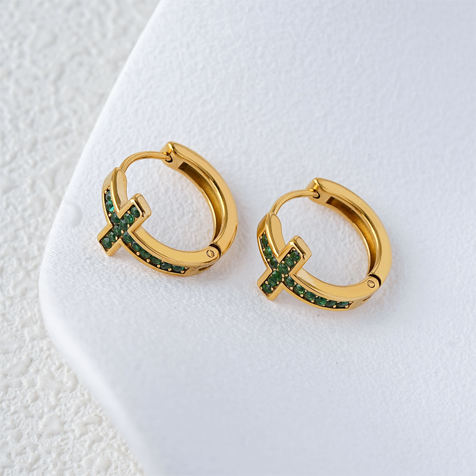 Elegant yet meaningful, these gold plated hoop earrings combine timeless symbolism, modern craftsmanship, and durable materials. Their refined design, comfortable size, and sparkling green stones make them a versatile choice for fashion retailers and jewelry collections alike. These stylish gold cross earrings are also an excellent option for wholesale cross earrings, appealing to customers looking for contemporary stainless steel jewelry with a symbolic touch.